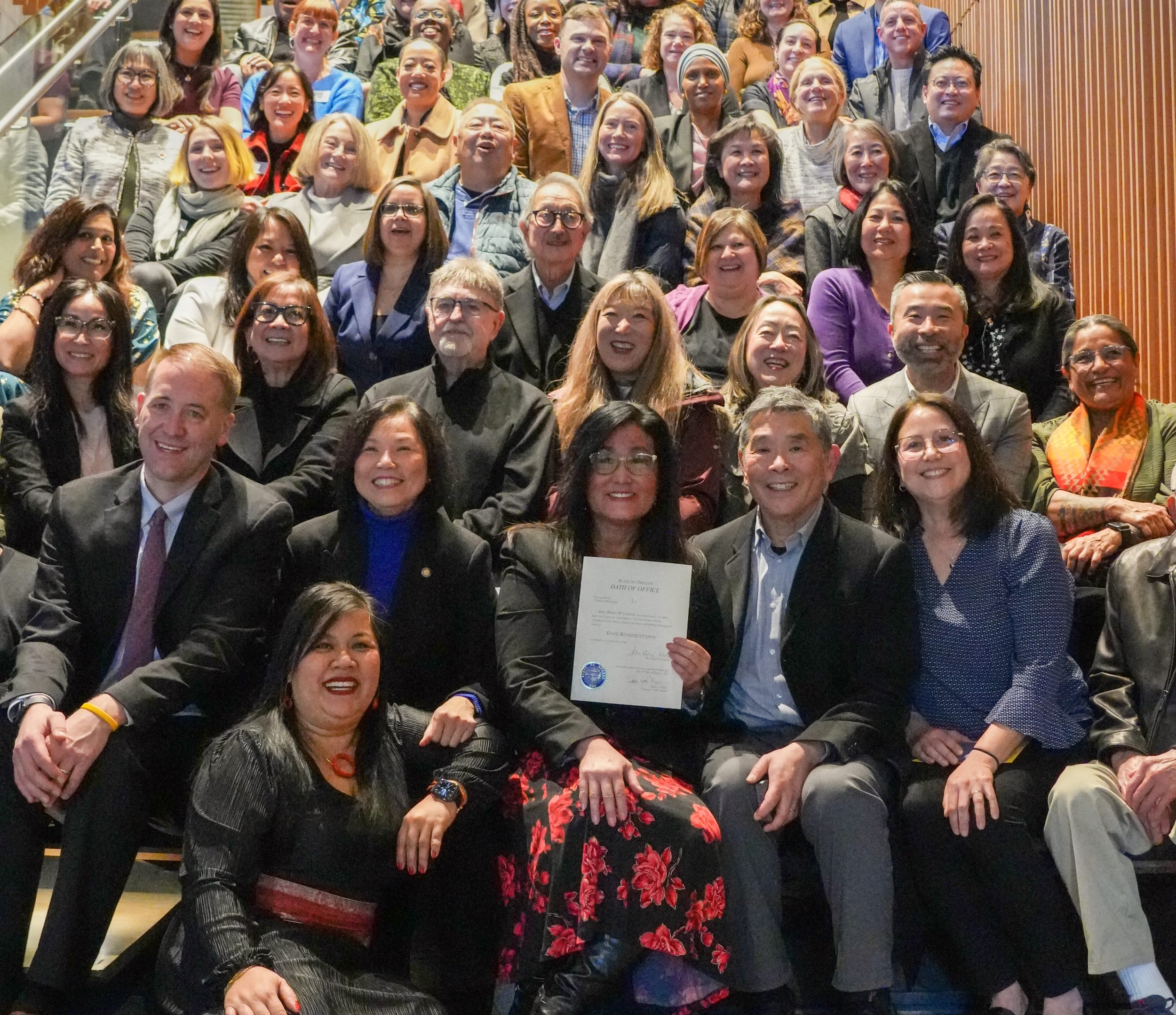 PORTLAND, Ore., United States—January 20, 2025—On Sunday, January 19, Oregon State Representative Mari Watanabe (Washington County) was sworn in by Justice Aruna Masih of the Oregon Supreme Court to fill a vacant seat for House District 34 in front of crowd of family, friends, colleagues, and admirers at Portland Japanese Garden. Watanabe, who serves on the Garden’s Board of Trustees, is the granddaughter of Japanese immigrants and has been a Portland resident since 2000. Her appointment, certified by Oregon Secretary of State Tobias Read at the ceremony, makes her the first Japanese American woman to serve in the Oregon legislature, a body that held its first regular session in 1860.