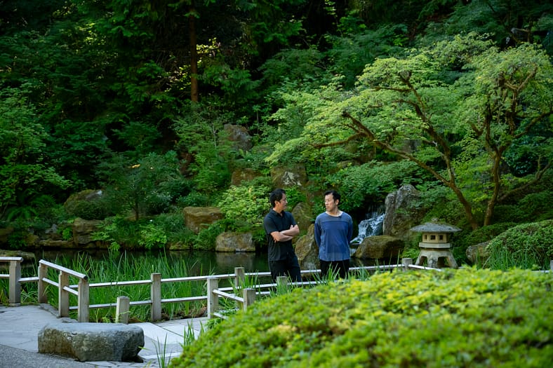 Takahiro Iwasaki admits that when he was first invited to Portland Japanese Garden in 2018 for a research trip ahead of becoming our Artist-in-Residence, he was not expecting much, having only encountered loose interpretations of Japanese landscape design and architectural principles outside of Japan. Yet, Iwasaki recalls setting foot through the Garden’s Antique Gate and feeling transported straight back to Japan. As an artist who finds inspiration in bonsai and ikebana philosophies, he was pleasantly surprised by the Garden’s authenticity and respect for nature. The Hiroshima-based artist also found kinship in the organization’s mission of Inspiring Harmony and Peace, a mindset intimately familiar to him and his hometown. Following the 1945 atomic bombing of Hiroshima, the prefecture capital rebuilt itself as a city of peace. This encouraged Iwasaki to contemplate ways his art could build bridges of understanding that lead to a more peaceful world.