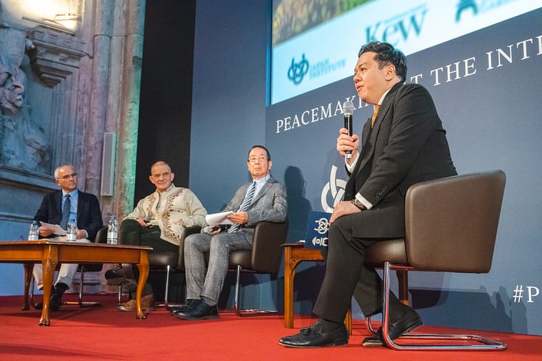 address given by Nobel Peace Center Director, Kjersti Fløgstad. The core program of the symposium consisted of two panel discussions, “Japanese Gardens: Transforming the Global Cultural Landscapes” and “Re-imagining Peace at the Intersection of Architecture, Art, and Nature,” both moderated by WHO Goodwill Ambassador, James Chau. Fløgstad, whose organization will be partnering with Japan Institute in 2023, set the tone for the event with a keynote speech, sharing a quote by former South Africa President and Nobel Peace Prize Winner, Nelson Mandela, “The best weapon is to sit down and talk.” The greatest impact in the room came from anecdotes rooted in human experience.