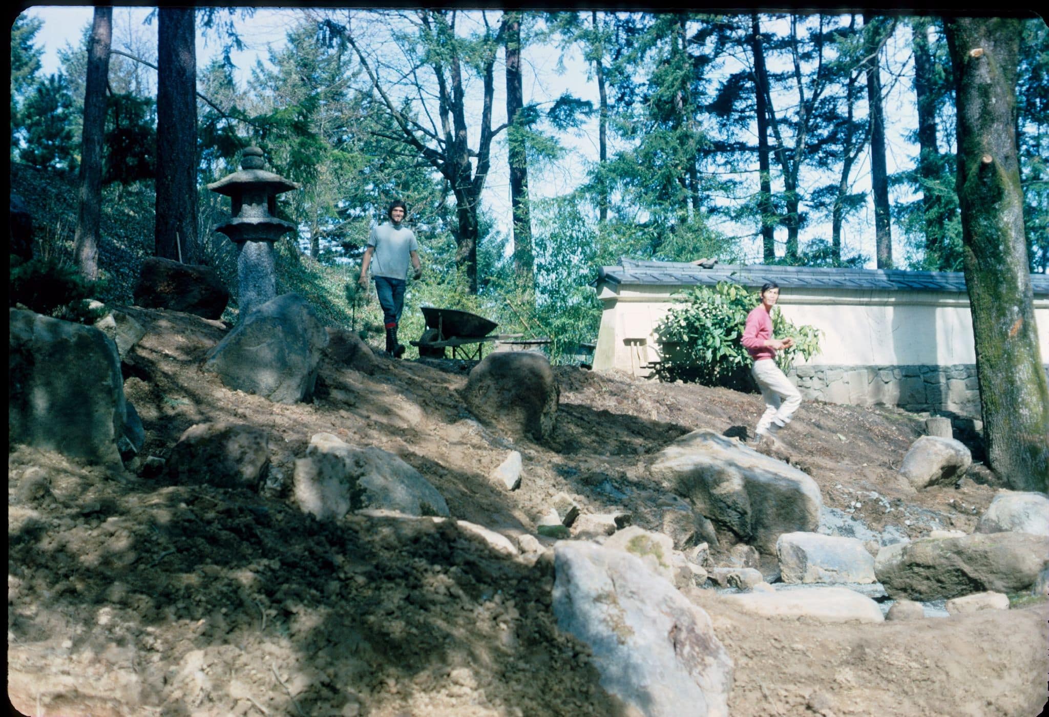 The Natural Garden would take its place under the guidance of Hachiro Sakakibara, the third Garden Director of Portland Japanese Garden (1972-74) and a student of Ogata. His predecessor and friend, Hoichi Kurisu (Garden Director, 1968-73), recalls that he and Sakakibara recognized the Moss Garden was failing and that a new course of action was needed. “When Sakakibara san arrived, he also thought that there had to be something done to the Moss Garden, and we talked about what we could do,” Kurisu told McVicker in 2010 when the former garden directors of Portland Japanese Garden returned for a reunion. “I remember that we then showed a design we proposed at the Board meeting but we never got a response of whether we would be allowed to do it or not. By that time, Sakakibara san was officially hired at the Garden and since the board never gave a clear answer, I remember him going in and asking for an answer. The Board finally decided to approve this project. It is a natural-style garden that we implemented.”