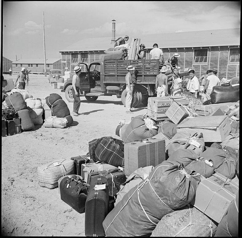 After the December 7, 1941 attack on Pearl Harbor, a vitriolic racism toward those of Japanese descent dating back decades struck a fever pitch. President Franklin D. Roosevelt issued Executive Order No. 9066 on February 19, 1942 in which he authorized the government to “prescribe military areas” from which people could be excluded. The document did not mention Japanese immigrants nor American citizens of Japanese descent, but it was quickly used as cudgel against them. It paved the way for the U.S. Military to declare the entirety of the Pacific Coast as a military area and to mandate the removal of Issei (first generation immigrants from Japan), Nisei (second generation), and other groups.