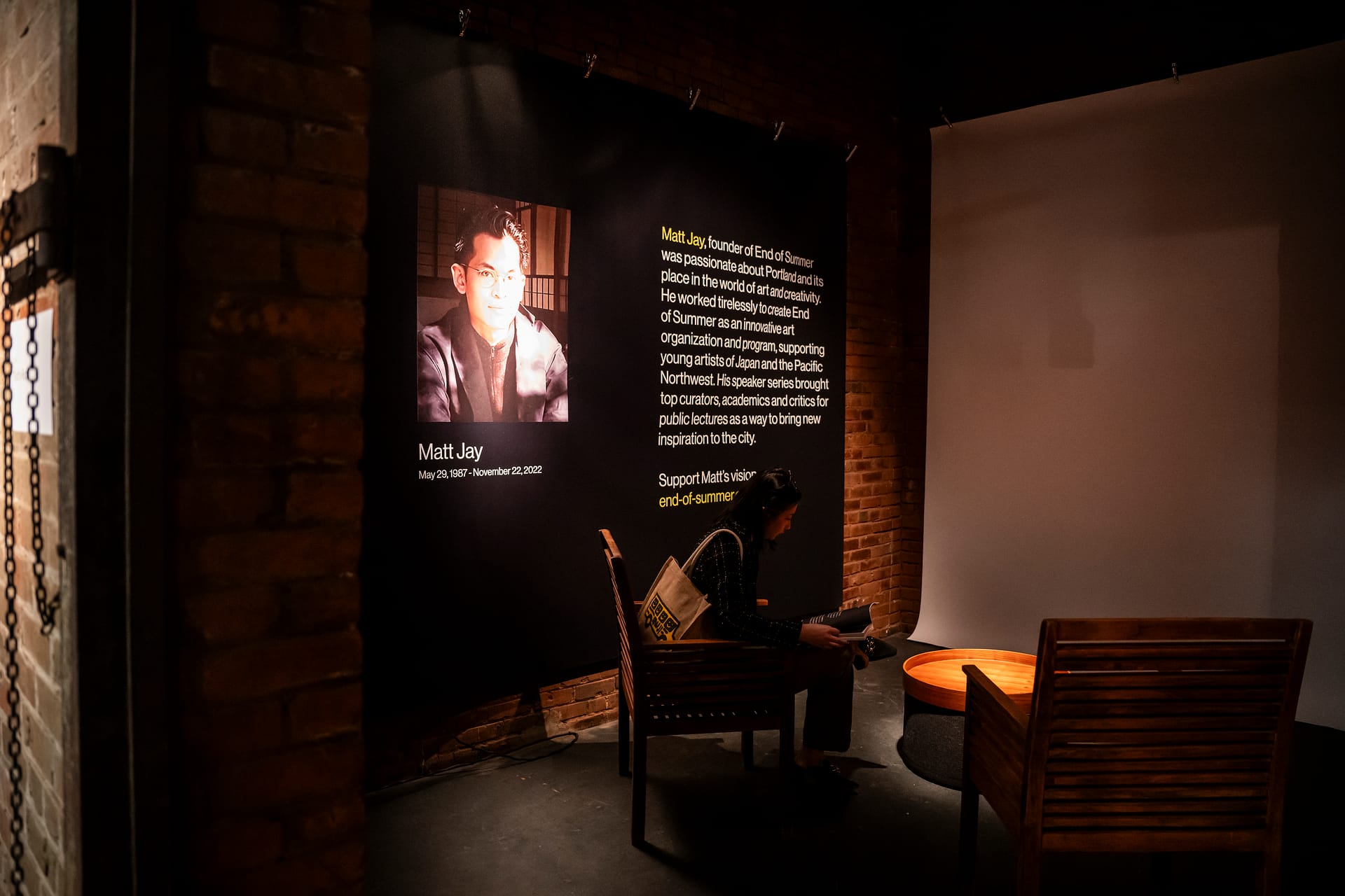 Established in 2016 by Matt Jay (1987 – 2022), End Of Summer is a cross-cultural art program based in Portland, Oregon. It is comprised of an annual summer residency for emerging artists and creators from Japan, to immerse themselves in the natural and creative landscapes of the Pacific Northwest. The gallery space will share how the residency program began, including personal stories from the participating artists that relay how the experience of working in the art communities of the Pacific Northwest changed their lives and their understanding of an artist’s practice.
